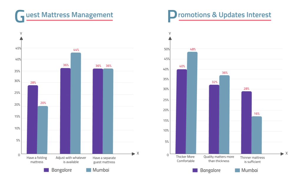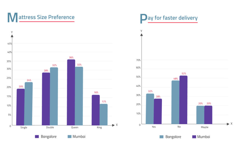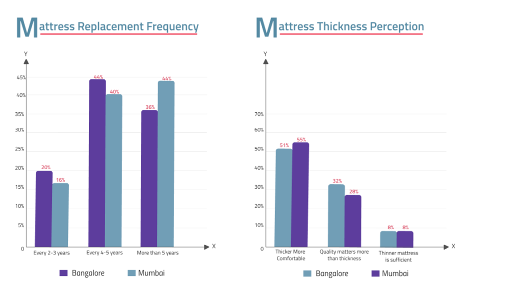 - Material & Feel : Bangalore respondents leaned toward foam + spring mattresses, while Mumbai consumers favored coir + foam for its firmness and breathability.